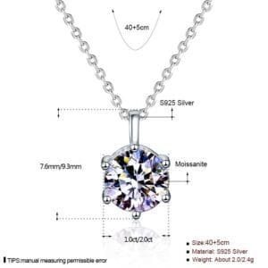 قلادة ليفاندور, من الألماس المويسينايت , فضة إسترلينية , مطلي بالذهب الابيض عيار 18