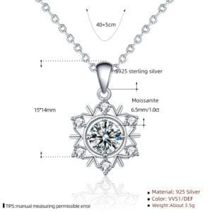 قلادة ليفاندور على شكل ندفة الثلج , من الألماس المويسينايت , فضة إسترلينية , مطلي بالذهب عيار18 .