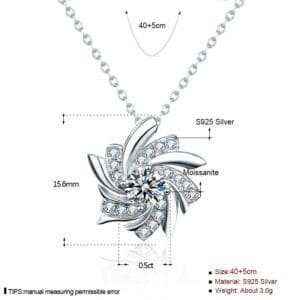 قلادة ليفاندور على شكل دوارة, من الألماس المويسانيت، فضة إسترلينية مطلية بالذهب عيار 18 قيراط.