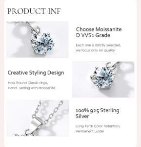 قلادة ليفاندور , مرصع بألماس الصغير , من الألماس المويسينايت الدائري , فضة استريلينية , مطلي بالذهب عيار 18