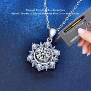 |Necklace,  Snowflake Moissanite Diamond VVS1 DEF Color 1ct  Sterling Silver 925,  18K Gold Plated.